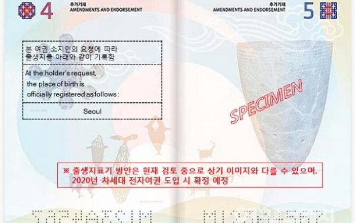 내년 하반기부터 본인이 원하면 전자여권에 출생지까지 표기 할 수 있게 된다.외교부는 내년 하반기에 새롭게 도입되는 차세대 전자여권에 국민이 희망하는 경우 출생지를 추가기재 할 수 있도록 할 예정이라고 15일 밝혔다.▲ 차세대 여권 출생지표기 추가기재 예시이번 조치는 국