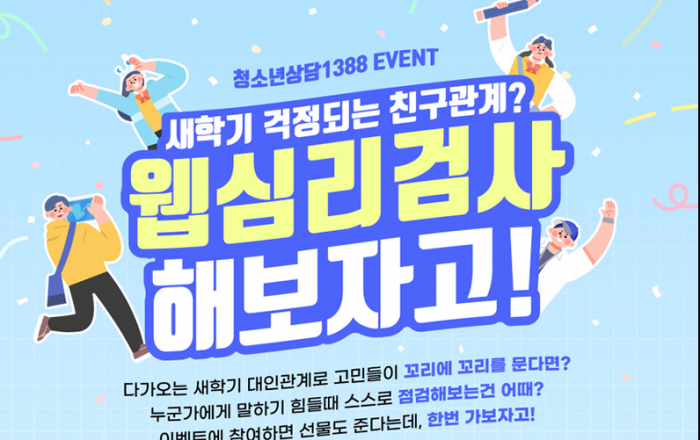 # 새학기가 될 때 마다 자신감이 없어 새로운 친구들을 사귀기가 어려웠던 ㄱ군(18세)은 이대로 사회에 나간다면 어떻게 해야 할지 걱정되는 마음에 청소년상담1388 누리집에서 웹심리검사 후 고민글을 남겼다. 상담사는 웹심리검사 결과를 바탕으로 ㄱ군의 마음에 공감하고