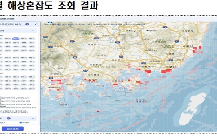 공공데이터 활용해 해상선박 혼잡도를 72시간 뒤까지 예측 가능한 국내 첫 ‘바다 위 혼잡도’ 예측 데이터분석 모델이 나왔다. 2.5㎞ 격자별 혼잡도를 4단계로 표시하고 예측 혼잡도가 높은 구역의 우회 정보를 제공하며, 해양레저활동 위한 안전한 위치선정에도 활용할