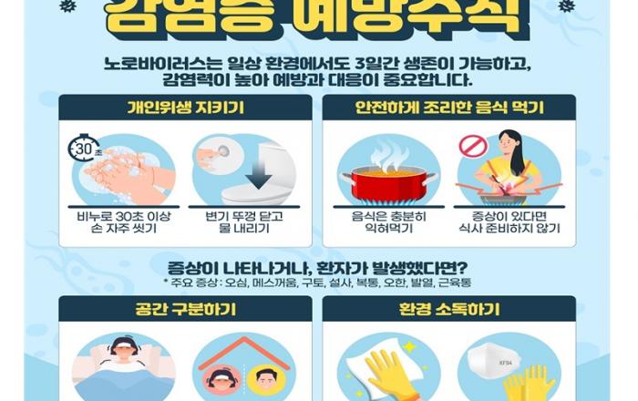 질병관리청은 코로나19 방역 완화 이후 처음 맞는 설 연휴를 앞두고 비상방역체계를 앞당겨서 운영한다고 19일 밝혔다. 노로바이러스 감염증이 최근 5년 내 최고 수준으로 발생하고 호흡기세포융합바이러스 감염증(RSV) 등 다양한 호흡기 감염병이 유행함에 따른 조치이다. 질