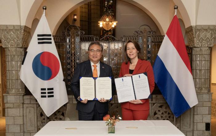 한국과 네덜란드 양국은 내년 정책연구소 간 대화체를 설립해 경제안보 관련 소통을 강화하기로 했다. 또 양국 워킹홀리데이 참여 인원은 연 100명에서 연 200명으로 참여 인원을 두 배 늘리기로 했다. 14일 외교부에 따르면, 윤석열 대통령의 네덜란드 국빈방문을 수행 중