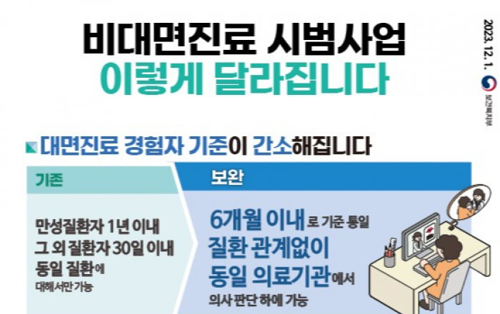 현재 시범사업을 벌이고 있는 비대면진료가 대폭 확대된다. 섬·벽지 지역에 응급의료 취약지를 추가하고, 휴일·야간 시간대에는 진료이력에 관계없이 비대면 진료를 허용할 계획이다. 보건복지부는 1일 비대면진료 시범사업 보완방안을 발표했다. 코로나19에 따른 한