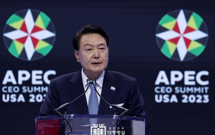 윤석열 대통령은 16일(현지시간) “대한민국은 무탄소 에너지 활용 확산에 앞장서겠다”고 말했다. 또 “대한민국은 기후격차 해소를 위해 책임있게 기여해 나갈 것”이라고 밝혔다. 대통령은 이날 미국 샌프란시스코에서 열린 아시아태평양경제협력체(APEC) 정상회의 세