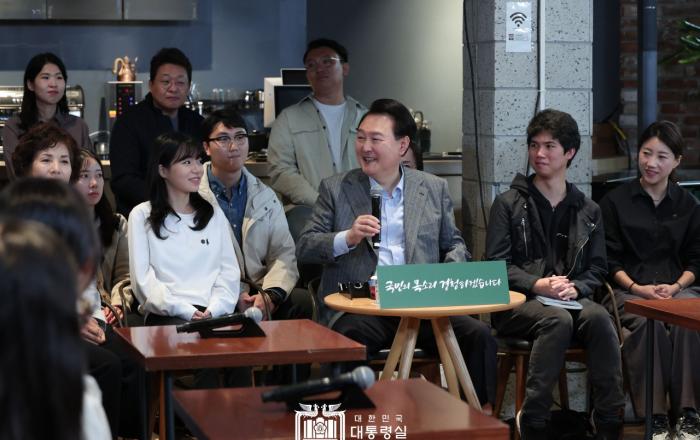 윤석열 대통령은 1일 오전 서울 마포구에 있는 한 카페에서 제21차 비상경제민생회의를 주재했다. 이 자리에는 각계각층의 국민 60여 명이 참석해 민생 고충과 정부에 대한 건의 사항 등을 이야기했다. 이번 회의는 대통령이 그간 강조해 온 “국민은 늘 옳다. 책상과 사무실
