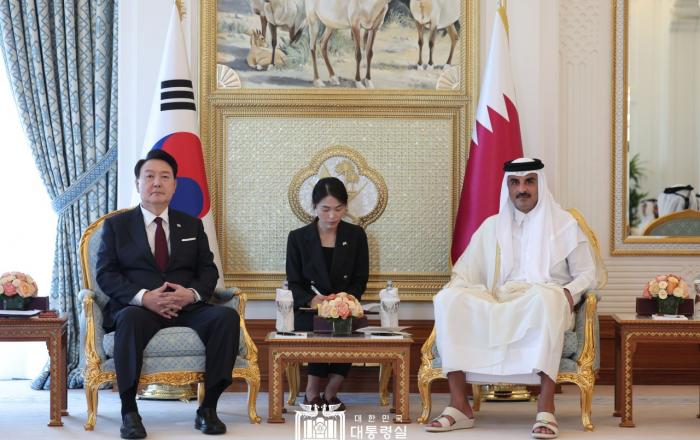 카타르를 국빈 방문 중인 윤석열 대통령은 25일(현지시간) 타밈 빈 하마드 알사니 카타르 국왕과 정상회담을 했다. 이번 회담은 대통령의 취임 이후 처음으로 개최된 한-카타르 정상회담으로서, 내년도 양국 간 수교 50주년을 앞둔 시점에서 개최됐다. 10월 25일
