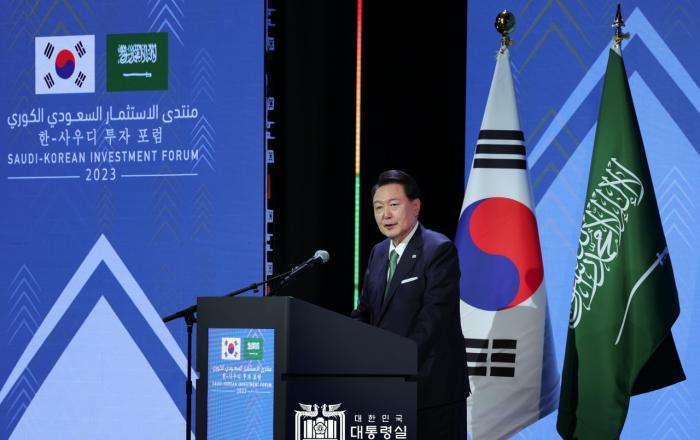 사우디아라비아를 국빈 방문 중인 윤석열 대통령은 22일(현지시간) 오후 한-사우디 투자포럼에 참석해 그간의 양국 경제협력 성과를 평가하고, 미래 새로운 파트너십을 위한 협력 방향을 제시했다. 이날 포럼에는 이번 국빈 방문에 동행한 경제사절단을 포함해 한국과 사