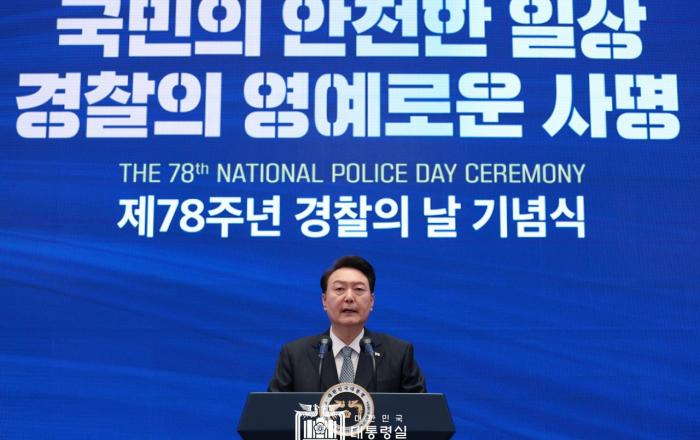 윤석열 대통령은 18일 대한민국 경찰들에게 “국민의 안전을 지키는 것이 국가의 첫 번째 존재 이유임을 가슴 깊이 새겨 달라”고 당부했다. 또 “국민이 안심하고 살 수 있는 대한민국이 될 수 있도록 경찰 조직을 국민의 안전과 직결되는 ‘치안’ 중심으로 재편하고 현장