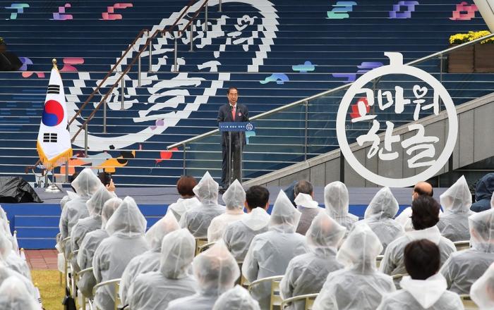 한덕수 국무총리는 9일 제577돌 한글날 경축식 기념사에서 “AI 시대를 이끌어 나갈 세계인의 언어가 바로 ‘한글’이 될 것으로 기대한다”고 말했다. 해외 순방 중인 한 총리는 이날 이상민 행정안전부 장관이 대독한 축사를 통해 이같이 밝히며 “정부는 AI 디지털