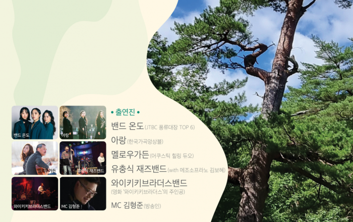남부지방산림청 울진국유림관리소는 10월 8일 18시 울진 소광리 금강소나무숲에서 숲속음악회를 개최한다고 밝혔다. 울진 금강소나무 숲길은 산림청 제1호 국가숲길로 2011년 숲길 개통이래 매년 3만여 명이 방문하는 숲길 명소로 사랑받아