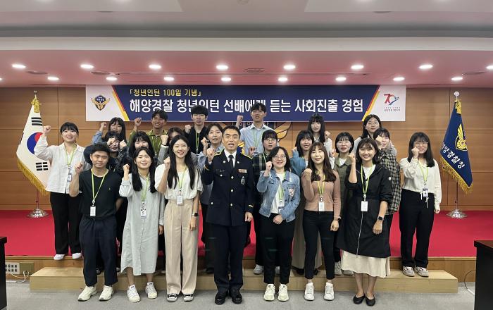 해양경찰청은 “해양경찰 청년인턴 채용 100일을 맞아 그동안 인턴사원의 업무 우수사례를 돌아보고, 선배와의 대화를 통해 사회진출 경험과 노화우를 듣는 뜻깊은 자리를 마련했다.”고 26일 밝혔다. 해양경찰청에 따르면, 오늘 청사 대회의실에 청년인턴 30여 명이 참석한