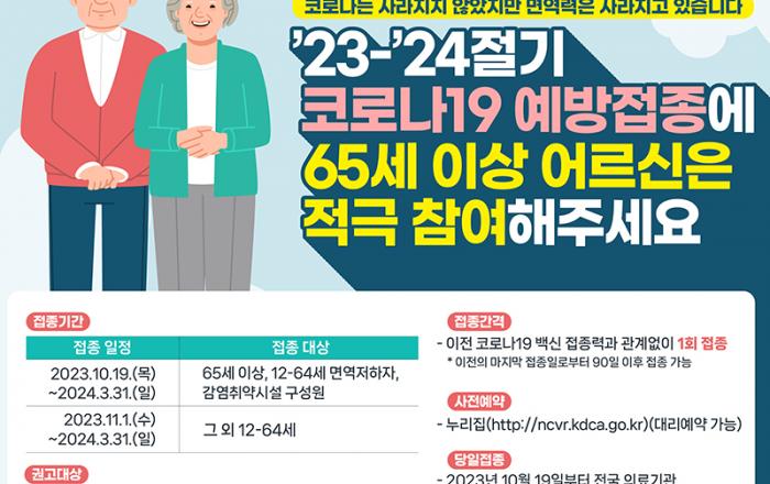 오는 10월 19일부터 전국 의료기관과 보건소 등에서 코로나19 무료 예방접종을 실시한다. 지영미 질병관리청장은 26일 “이번 접종의 목표는 65세 이상 어르신과 면역저하자 등의 코로나19로 인한 중증·사망을 예방해 건강 피해를 최소화하는 것”이라며 이같은 내용의 ‘2