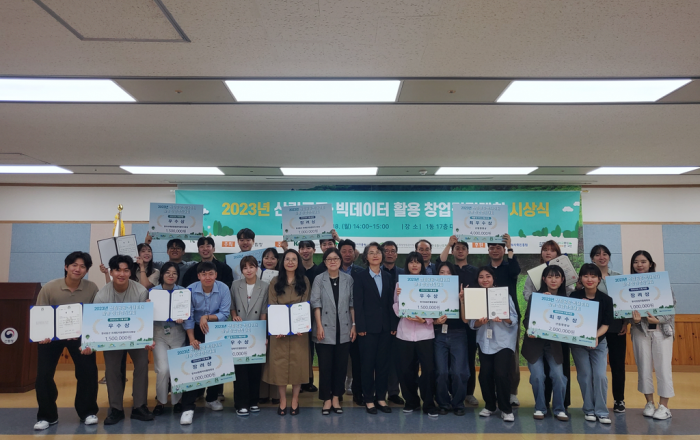 산림청은 18일 정부대전청사에서 한국임업진흥원, 한국산림복지진흥원, 한국수목원정원관리원, 한국등산·트레킹지원센터와 함께 「2023년 산림공공·빅데이터 활용 창업경진대회」 시상식을 개최했다. 이번 대회에는 총 27팀이 작품을 접수하였으며, 내·외