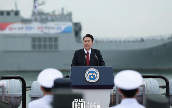 윤석열 대통령은 15일 “강력한 국방력을 바탕으로 힘에 의한 평화를 구축하고 자유민주주의를 굳건히 수호할 것”이라고 강조했다. 대통령은 15일 오전 인천항 수로에서 개최된 ‘제73주년 인천상륙작전 전승행사’를 주관한 자리에서 “굳건한 한미연합방위태세를 기반으로 한