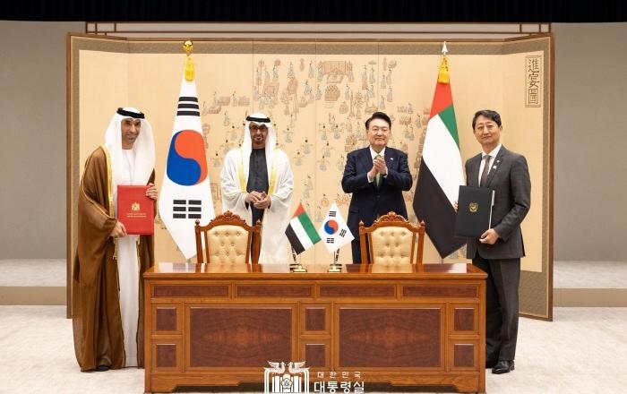 한국과 아랍에미리트(UAE)는 포괄적 경제동반자 협정(CEPA)에 정식 서명하는 등 8건의 협정과 양해각서(MOU)를 체결했다. 아울러, 제3국 원전 시장 공동진출, 탄소포집 저장(CCS) 등 협력분야를 다양화하기로 했다. 산업통상자원부는 29일 윤석열 대통령과 모하메