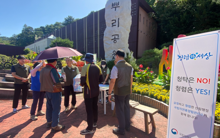 산림청 국립자연휴양림관리소는 8일(금) 대전 뿌리공원 일대에서 청렴한 공직문화 확산 및 적극행정을 위한 캠페인을 실시했다고 밝혔다. 이번 캠페인은 지난 4일 개최된 산림청 “반부패·청렴 중앙 결의대회”의 취지를 이어받아 반부패에 대한 결의를 다