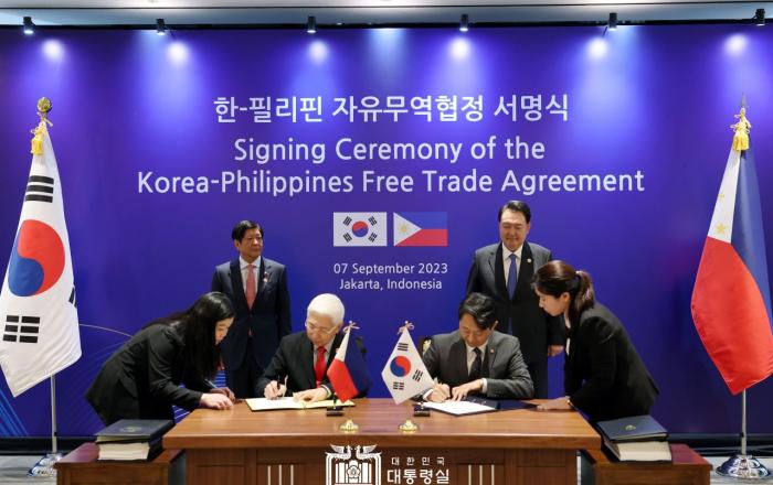 한국과 필리핀 간 자유무역협정(FTA) 타결 선언 후 1년 10개월여 만에 정식 서명이 이뤄졌다. FTA 발효 시 한국산 내연 자동차는 즉시, 전기차 등 친환경차는 5년 내 관세가 철폐돼 필리핀 자동차 시장에서 경쟁력이 대폭 개선될 것으로 기대된다. 산업통상자원부는 7