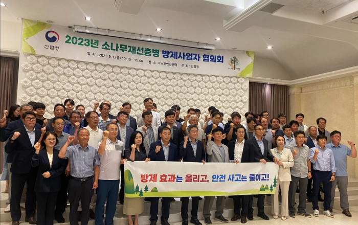산림청은 9월 1일(금)에 2023년도 하반기 소나무재선충병 집중방제기간에 들어가기 앞서 소나무재선충병 방제사업 분야 협·단체들과 함께 방제 품질향상과 안전한 방제를 위한 협의회를 개최하였다고 밝혔다. * 소나무재선충병 집중방제기간 : ‘23.10월∼