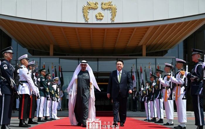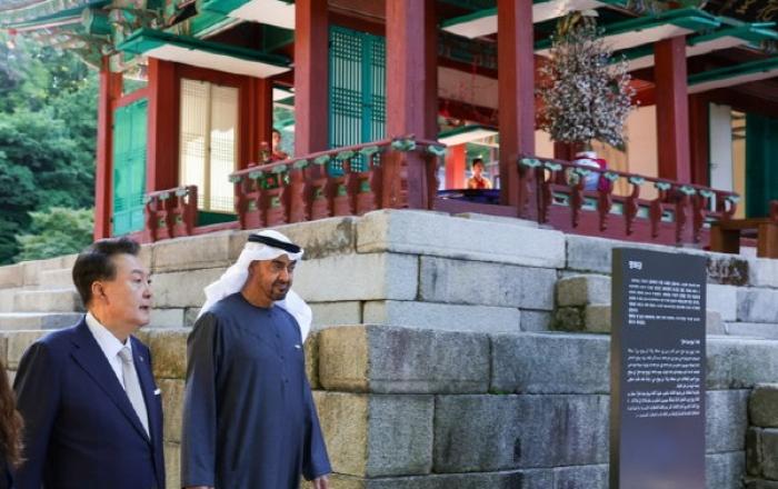 윤석열 대통령은 28일 국빈 방한한 아랍에미리트연합국(UAE)의 무함마드 빈 자이드 알 나흐얀 대통령과 친교 일정을 이어갔다. 윤 대통령은 UAE 현직 대통령의 최초 국빈 방한을 환영하며 다양한 일정을 함께 했다.윤 대통령은 이날 무함마드 대통령과 서울 창덕궁을 찾았다