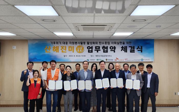 해양경찰청은 “국립공원공단, 도로교통공단, 한국환경공단, SK이노베이션, 한국중앙자원봉사센터와 「산해진미 플로깅 캠페인」 업무협약(MOU)을 체결했다.”고 30일 밝혔다. 플로깅*이란 걷거나 뛰면서 쓰레기를 주워 건강과 지구를 지키는 환경운동을 일컬으며, 산(山)과