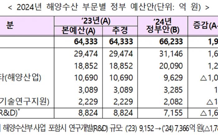 해양수산분야 내년 예산안은 연안 경제 활성화와 해양수산 경쟁력 확충에 집중 투자를 위해 편성됐다. 특히 일본 후쿠시마 오염수 방류 대응을 위해서는 지난해 대비 관련 예산을 약 2.5배 가량 대폭 확대한 7380억 원이 편성, 우리 해역과 수산물에 대한 안전관리가 더욱