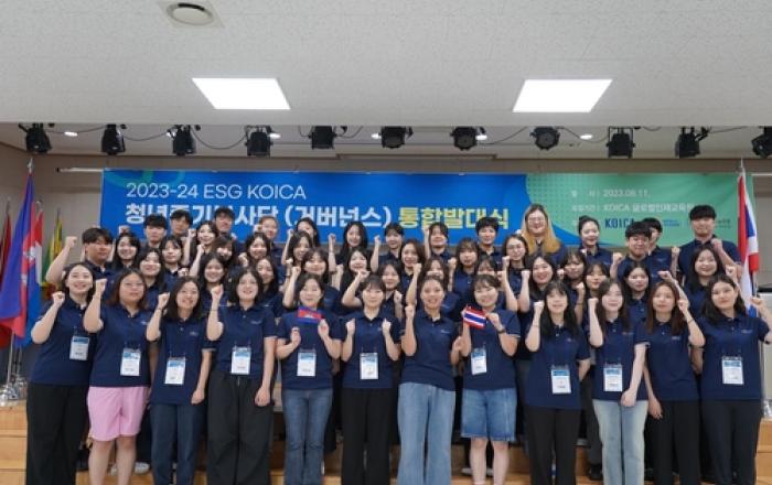 코이카(KOICA, 한국국제협력단)는 11일 오후 '2023-2024년 ESG 코이카-청년중기봉사단' 통합 발대식을 원격 화상회의 시스템을 활용해 개최했다. 'ESG 코이카-청년중기봉사단'은 환경, 사회, 거버넌스 등의 주제를 바탕으로 개발도상국에 파견되는 봉사단으