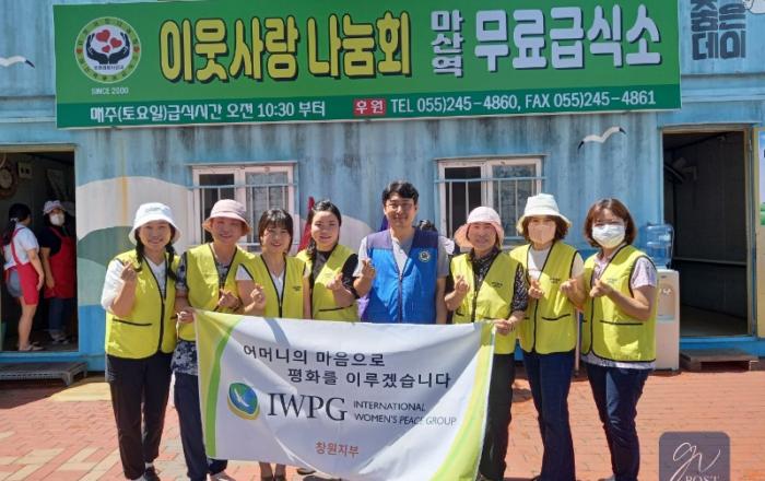 세계여성평화그룹(IWPG) 창원지부는 8월 12일 오전 창원시 마산역 옆에 위치한 이웃사랑나눔회의 무료급식소를 찾아 배식,설거지,청소 등 의 봉사활동을 이어갔다.▲ 세계여성평화그룹(IWPG) 창원지부 회원 (사진=정균식 기자)지부는 이날 평화의 기본인 인류애와 온정의