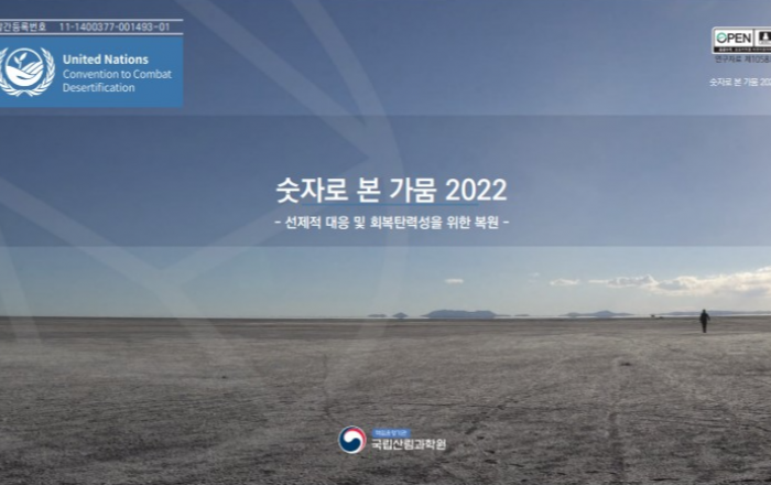 산림청 국립산림과학원은 2022년 UNCCD가 제15차 당사국총회(COP15)에서 발간한 ‘Drought in Numbers 2022’의 한글 번역본인 ‘숫자로 본 가뭄 2022’를 발간했다고 밝혔다. 이번 간행물은 대륙별 가뭄 현황, 가뭄이