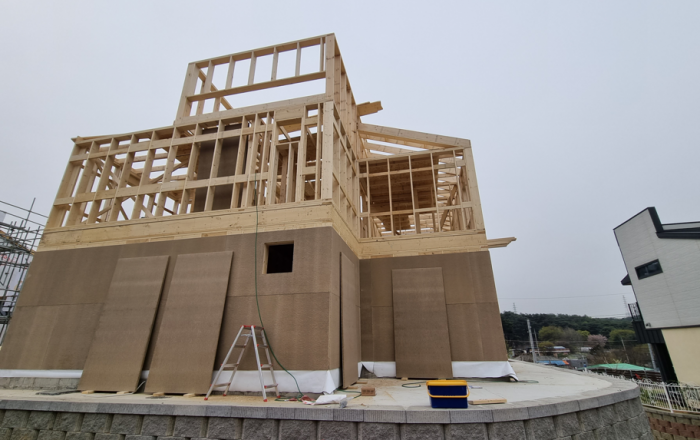 산림청 국립산림과학원은 전량 수입에 의존해오던 목조주택(경골목구조)의 주요 건축 부재인 덮개 재료를 국산화할 수 있는 구조용 파티클보드를 개발하고, 현장 적용까지 완료했다고 밝혔다. 국내에서 매년 만 동 이상 지어지고 있는 목조주택 대부분