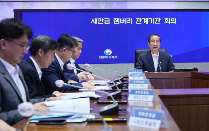 한덕수 국무총리는 9일 “정부는 (잼버리) 모든 대원들이 출국하기 전까지 빈틈없이 지원할 것을 약속드린다”고 밝혔다. 이날 오전 정부서울청사에서 새만금 잼버리 비상대책반 회의를 주재한 한 총리는 “태풍으로 인해 불가피하게 새만금 영지활동은 종료되었지만, 잼버리는 주말까