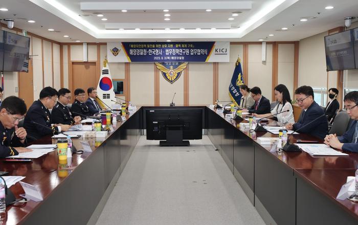 해양경찰청과 한국형사·법무 정책연구원은 청사 대회의실에서“업무협약을 체결하고 해양 치안 관련 정책 수립 연구 협력을 위한 다양한 의견을 교환했다.”고 3일 밝혔다.지난‘20년 2월 수사권 조정에 따른‘해양경찰법’개정 등 사법 환경의 변화에 의한 해양 치안‧법무 분야 정