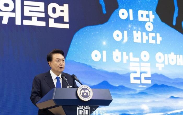 윤석열 대통령은 25일 “우리 군은 어떠한 경우라도 북한이 대한민국을 감히 넘보지 못하도록 확고한 대비태세를 유지하고, 북한의 도발에 압도적으로 단호하게 대응할 것”이라고 밝혔다. 윤 대통령은 이날 오전 대구 엑스코에서 개최된 ‘6·25전쟁 제74주년 행사’에 참석해
