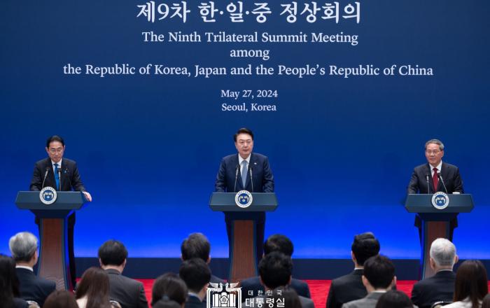 윤석열 대통령과 일본 기시다 후미오 총리, 중국 리창 총리는 27일 한일중 정상회의를 정례화하는 등 3국 협력의 모멘텀을 강화하기로 합의했다. 또 인적 교류, 기후변화대응, 경제·통상, 보건·고령화, 과학기술·디지털전환, 재난·안전 등 6대 분야에서 실질적인 협력을 확