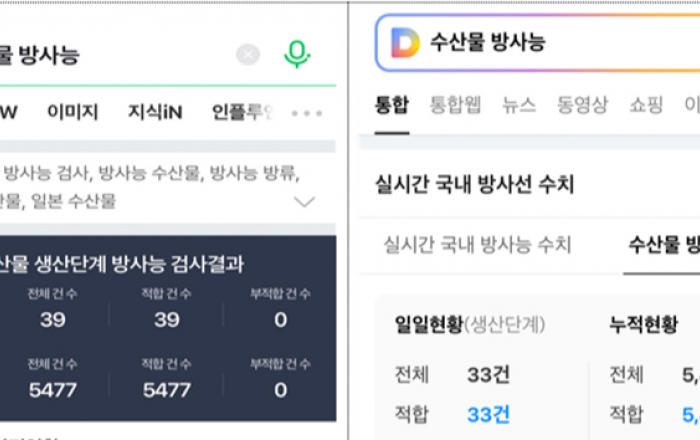 앞으로 주요 인터넷 포털사이트에서도 수산물 방사능 안전정보를 간편하게 확인 가능해진다. 박성훈 해양수산부 차관은 26일 일본 후쿠시마 원전 오염수 방류 관련 일일브리핑에서 “지난 25일부터 네이버와 다음에서 ‘수산물 방사능’ 등의 키워드로 검색하면, 수산물 생산단계 방