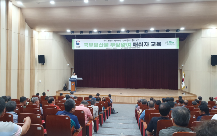 영덕국유림관리소는 2023. 07. 26.(수) 영덕로하스수산식품센터 2층 대강당에서 국유림 보호협약 대표자 등 94개 마을 100여명을 대상으로 국유임산물 무상양여 채취자 교육을 실시했다. 이번 교육은 국유림 보호협약제도를 이용하여 지역 주민들에게 가을