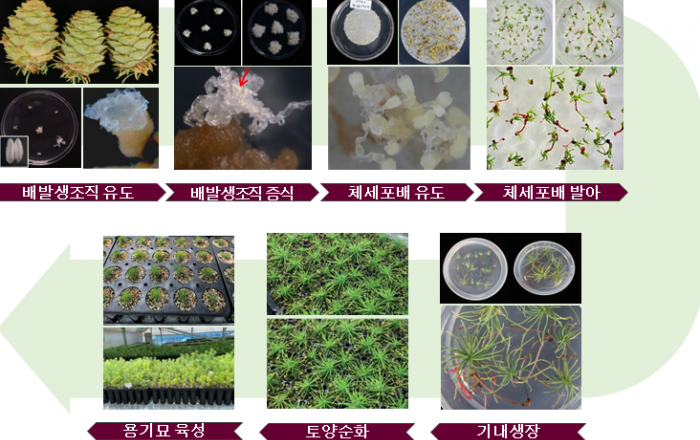 산림청 국립산림과학원은 낙엽송 조직배양묘 생산을 위한 체세포배(인공종자배)를 전년도보다 2개월 앞당겨 7월 중순부터 국립산림품종관리센터와 각 도 산림환경연구원에 공급을 시작한다고 밝혔다. 목재 수요가 높은 낙엽송의 조림 면적은 21년 기준 4,72