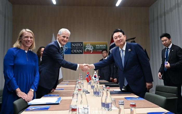 나토(NATO) 정상회의 참석차 리투아니아를 방문한 윤석열 대통령은 11일(현지시간) 요나스 가르 스퇴레 노르웨이 총리와 정상회담을 갖고, 양국 관계 발전, 실질 협력 강화, 국제 정세 동향, 국제무대 협력 방안에 대해 논의했다. 또 옌스 스톨텐베르그 나토 사무총장과