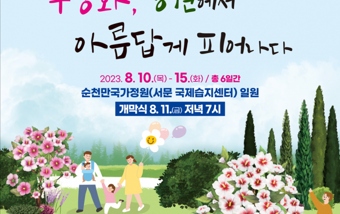 산림청은 8월 10일부터 15일까지 전남 순천만국가정원 서문 국제습지센터 일원에서 ‘제33회 나라꽃 무궁화 전국 축제’를 개최한다고 밝혔다. 무궁화 전국축제는 무궁화의 아름다움과 우수성을 널리 알리고 무궁화의 위상을 높이기 위해 1991년
