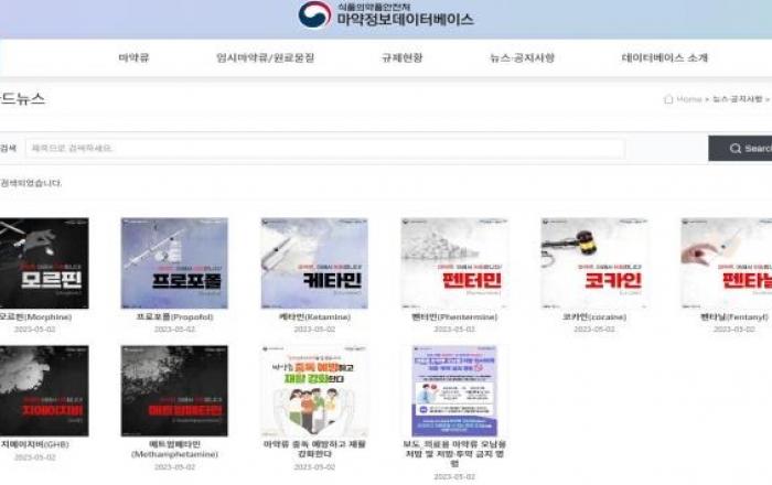 식품의약품안전처는 마약과 향정신성의약품, 마약 원료물질 등 모두 582종의 정보를 찾아볼 수 있는 ‘마약정보데이터베이스’를 구축하고 28일 공개했다. 마약정보데이터베이스는 마약 142종, 향정신성의약품 300종, 대마 3종 등 마약류를 비롯해 임시마약류 100종, 원료