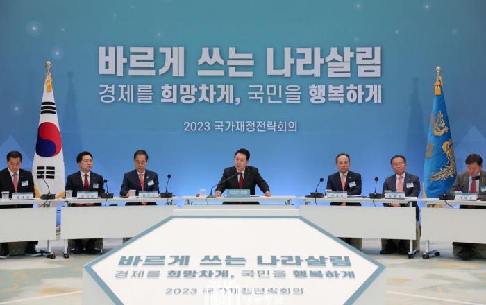 윤석열 대통령은 현 정부의 재정운영 기조와 관련 “이전 정부와 달리 책임감 있고 지속가능한 재정 운용 기조를 견지할 것”이라고 밝혔다. 윤 대통령은 28일 청와대 영빈관에서 ‘2023년 국가재정전략회의’를 주재, 모두발언을 통해 “정치적 야욕이 아니라