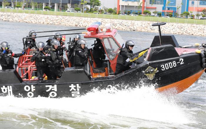 해양경찰청은 “오늘 오후, 경인항 인천터미널(인천 서구 정서진로 소재)에서 「2023 불법외국어선 단속역량 경연대회」 시상식과 함께 외국어선의 불법 집단침범 상황을 가정 해‧공 입체적 단속훈련이 펼쳐졌다.”고 28일 밝혔다. 이번 경연대회에는 지역 1‧2차 예선을