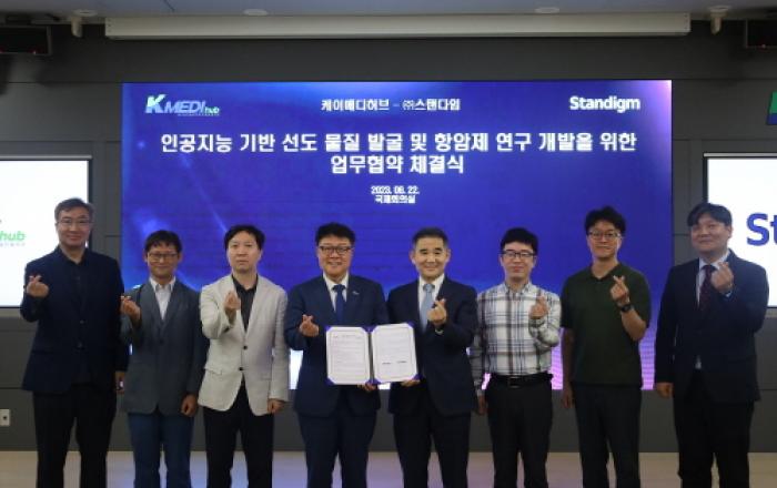 케이메디허브(대구경북첨단의료산업진흥재단)는 인공지능(AI) 기반 신약 후보물질 발굴 및 신약 연구·개발을 위한 업무협약을 체결했다. 케이메디허브와 ㈜스탠다임은 협약에 따라 ▲인공지능 기반 신약 후보물질 공동 발굴 ▲이중표적 항암제 및 억제제 공동 연구·개발 ▲전문인