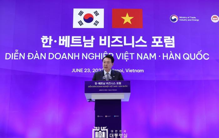 베트남을 국빈 방문 중인 윤석열 대통령은 23일 오후(현지시간)에 개최된 한-베트남 비즈니스 포럼에 참석해 1992년 수교 이후 양국 경제협력 관계를 평가하고 새로운 30년을 위한 파트너쉽 발전방향을 제시했다. 대통령은 “서울과 하노이의 물리적 거리는 3000km