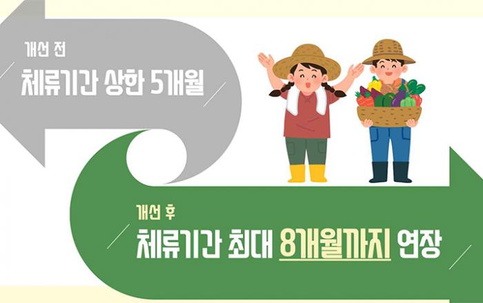 농어촌의 인력 부족 문제를 해소하기 위해 운영 중인 ‘외국인 계절근로자’의 최대 체류기간이 기존 5개월에서 8개월로 늘어난다. 법무부와 농림축산식품부는 30일 정부서울청사에서 이 같은 내용의 ‘외국인 계절근로제 개선방안’을 발표했다. 계절