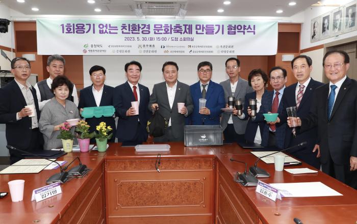 충북도는 도내 주요 축제를 일회용기 대신 다회용기를 사용하는 ‘일회용기 없는 친환경 문화축제’로 만들기 위한 업무협약을 체결했다. 이날 충북도청 소회의실에서 열린 업무협약식에는 김영환 충북도지사와 청원생명축제추진위원회 등 11개 시·군 축제추진기관 대표자들이 참석했