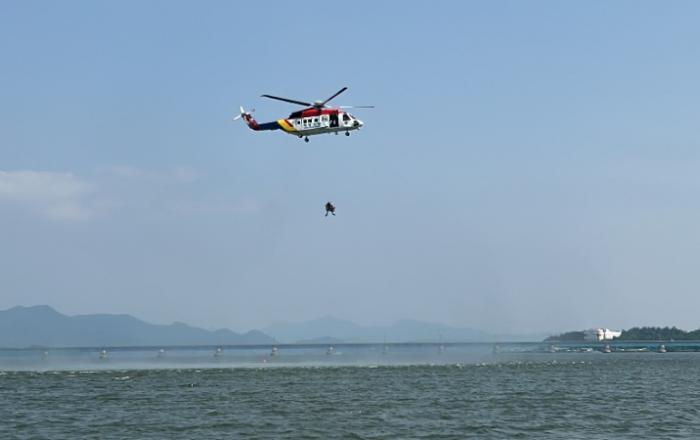 해양경찰과 해군의 합동 항공구조 훈련이 21일 오후, 목포시 소재 영산강 하구언 인근 강역에서 실시됐다.서해지방해양경찰청(청장 김인창)은 해양안전과 해양주권 수호의 양대 핵심 세력인 해경과 해군의 협력 체계를 강화해 해상 인명 구조 역량을 향상시키고, 국민의 해양 안전