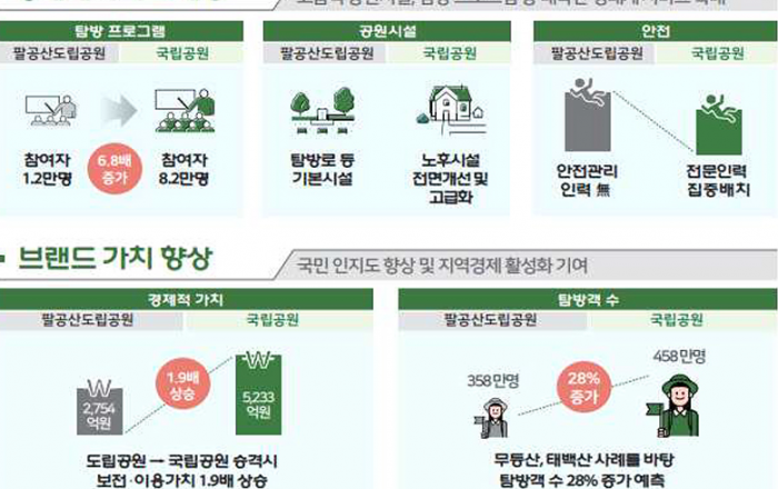 팔공산도립공원이 23번째 국립공원으로 승격됐다. 환경부는 23일 제138차 국립공원위원회를 열고 ‘팔공산국립공원 지정안’을 심의·의결했다고 밝혔다. 2021년 5월 대구광역시와 경상북도가 환경부에 팔공산국립공원 지정을 건의한 지 2년만, 1980년 5월 도립공원으로