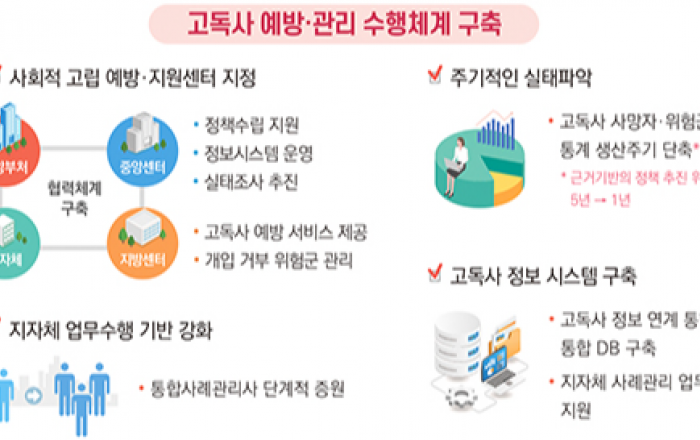 정부가 2027년까지 전체 사망자 100명당 고독사 수 20% 감소를 목표로, 고독사 위험군을 발굴·지원하기 위한 인적·물적 안전망을 최대한 동원하기로 했다. 보건복지부는 18일 관계부처 합동으로 임종 순간까지 인간의 존엄을 보장하기 위한 고독사 예방 최초의 기본