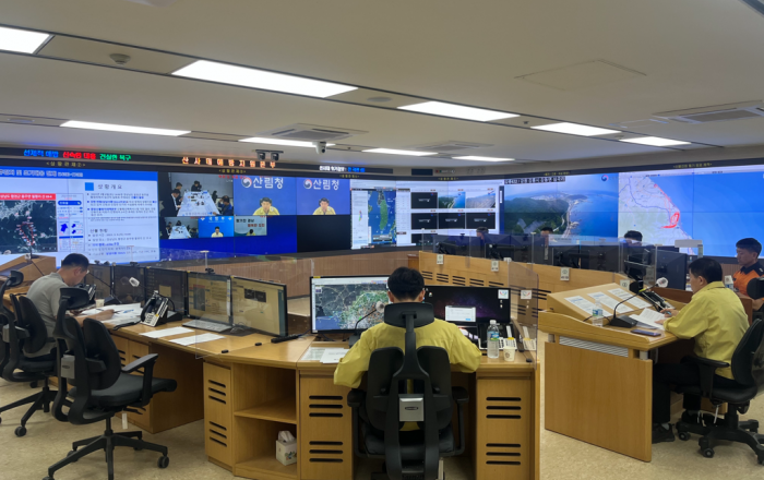 산림청은 5월 17일(수) 대형산불 발생을 가정하여 신속한 상황공유 및 대응상황을 점검하기 위해 유관기관과 함께 기관별 역할을 분담하고 재난관리분야(산불) 상황조치훈련을 실시하였다. * 참여기관 : 산림청, 행정안전부(재난대응훈련과, 환경재난대응과),