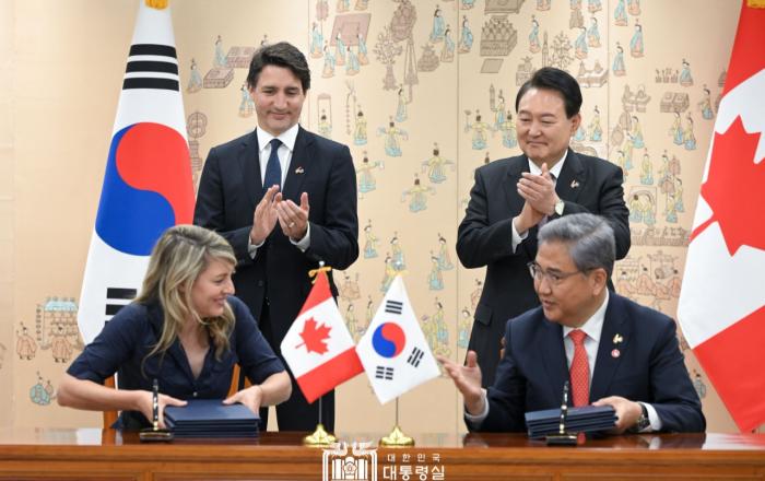 윤석열 대통령과 저스틴 트뤼도 캐나다 총리는 17일 정상회담을 갖고 한-캐나다의 외교관계 수립 60주년을 축하하고, 양국 우호관계의 강력함과 깊이를 재확인했다. 또, 공동성명 채택을 통해 그간의 협력 성과를 평가하고, 앞으로 더 평화롭고, 더 민주적이며, 더