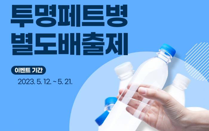 충북도는 투명페트병의 재활용을 극대화를 위하여 투명페트병 별도배출제관련 온라인 퀴즈이벤트를 5월 12일부터 5월 21일까지 추진한다. 이번 이벤트는 투명페트병 별도배출제에 대한 퀴즈를 통해서 제도에 대한 도민들의 인식을 확산하고 제도 정착을 가속화하기 위해 마련됐다